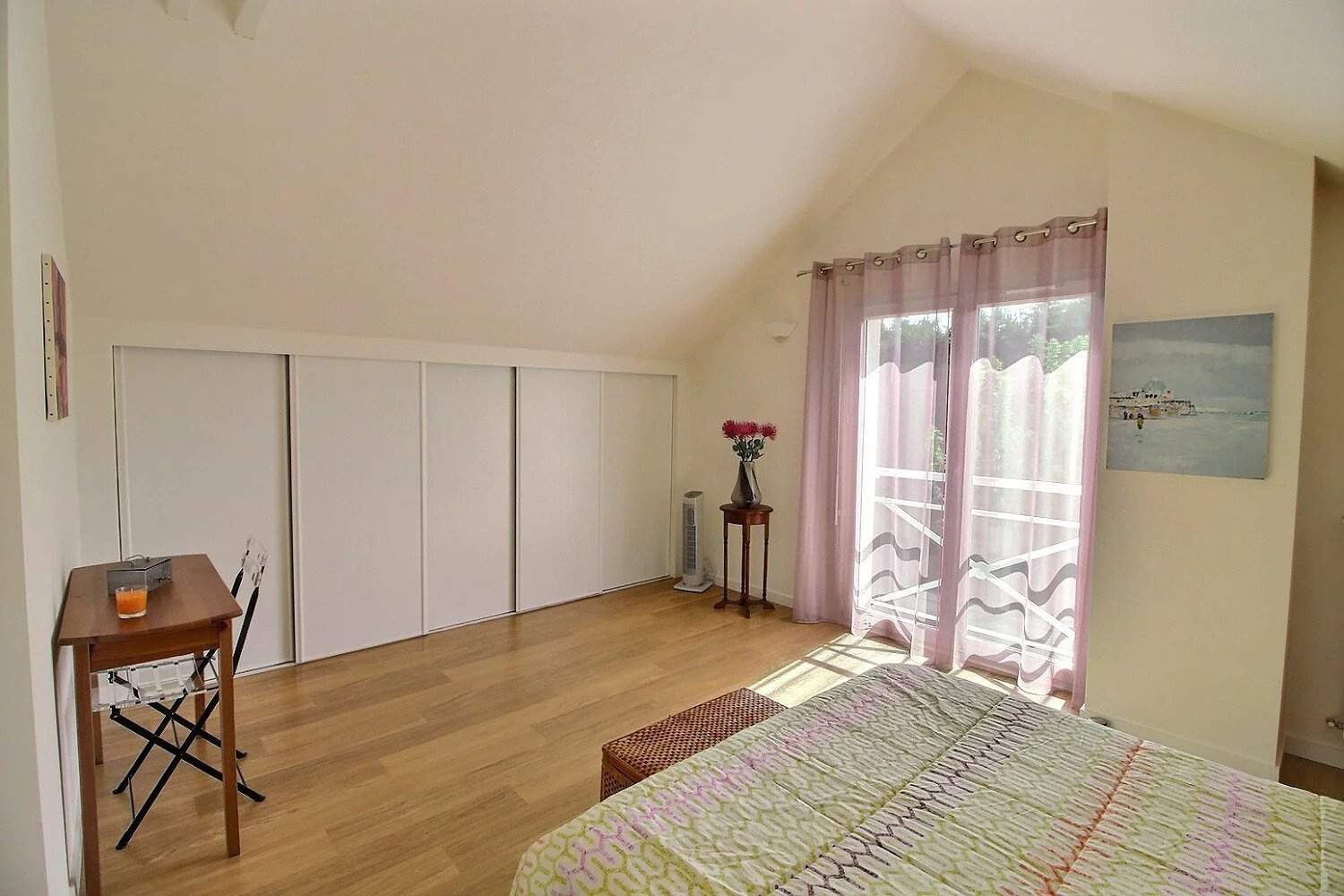 Le vaste séjour, baigné de lumière, s’ouvre sur une cuisine contemporaine, entièrement équipée et aménagée, créant un espace de vie chaleureux et fonctionnel. Une seconde salle de bain vient compléter l’espace nuit pour encore plus de confort.